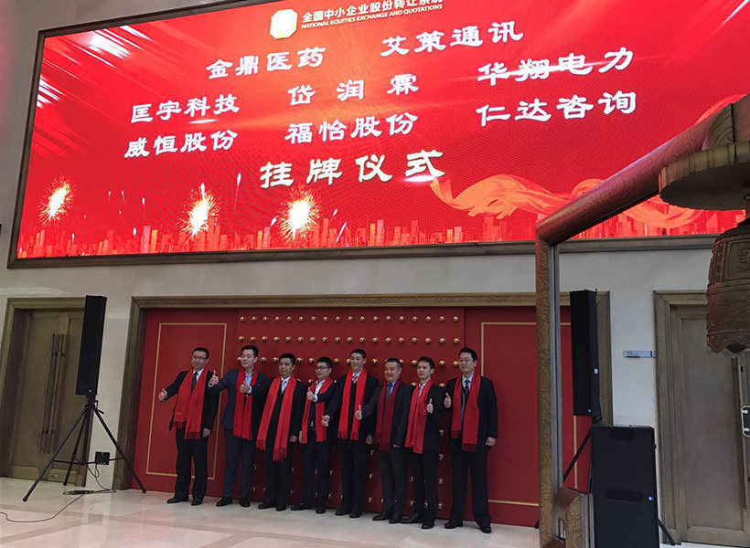 公司在全國中小企業(yè)股份轉讓系統(tǒng)交易中心舉行掛牌敲鐘儀式