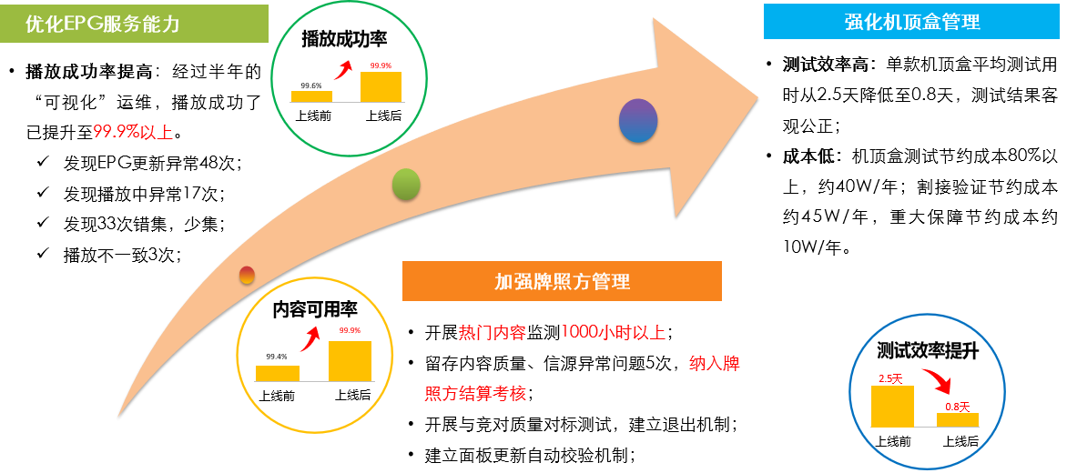 EPG運營改版及新業務上線驗證:由“可視化”運維工具替代地市運維人員在凌晨開展割接驗證,減輕一線運維壓力。