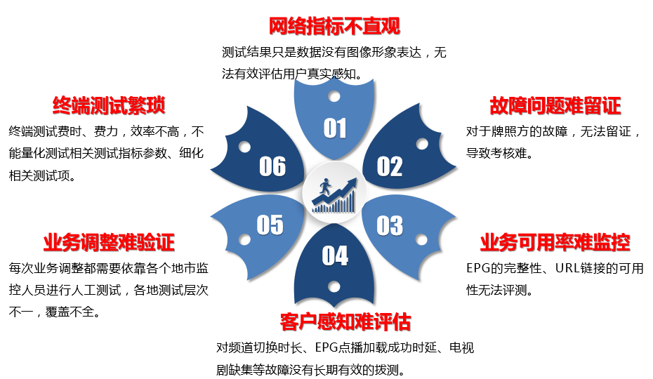 四川公司在落實集團“優視行動”要求之初,就發現電視業務運維存在諸多挑戰,而這些也是運維過程中迫切需要解決的難題,例如: