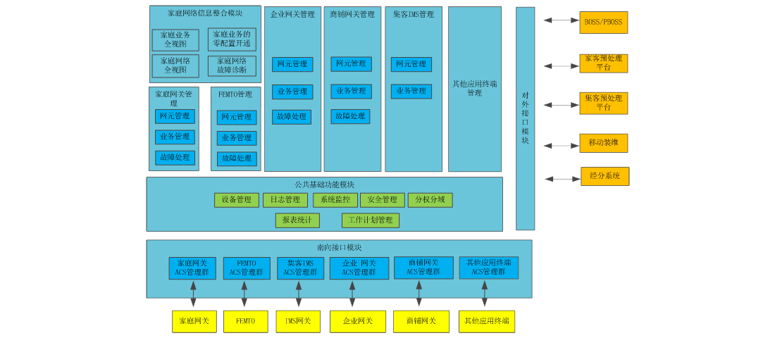 所有業務類型均以插件方式管理 支持新類型設備,系統只需上傳插件,無需任何重啟服務操作,功能擴展性強 平臺能管理家庭網關、機頂盒、IMS網關等。